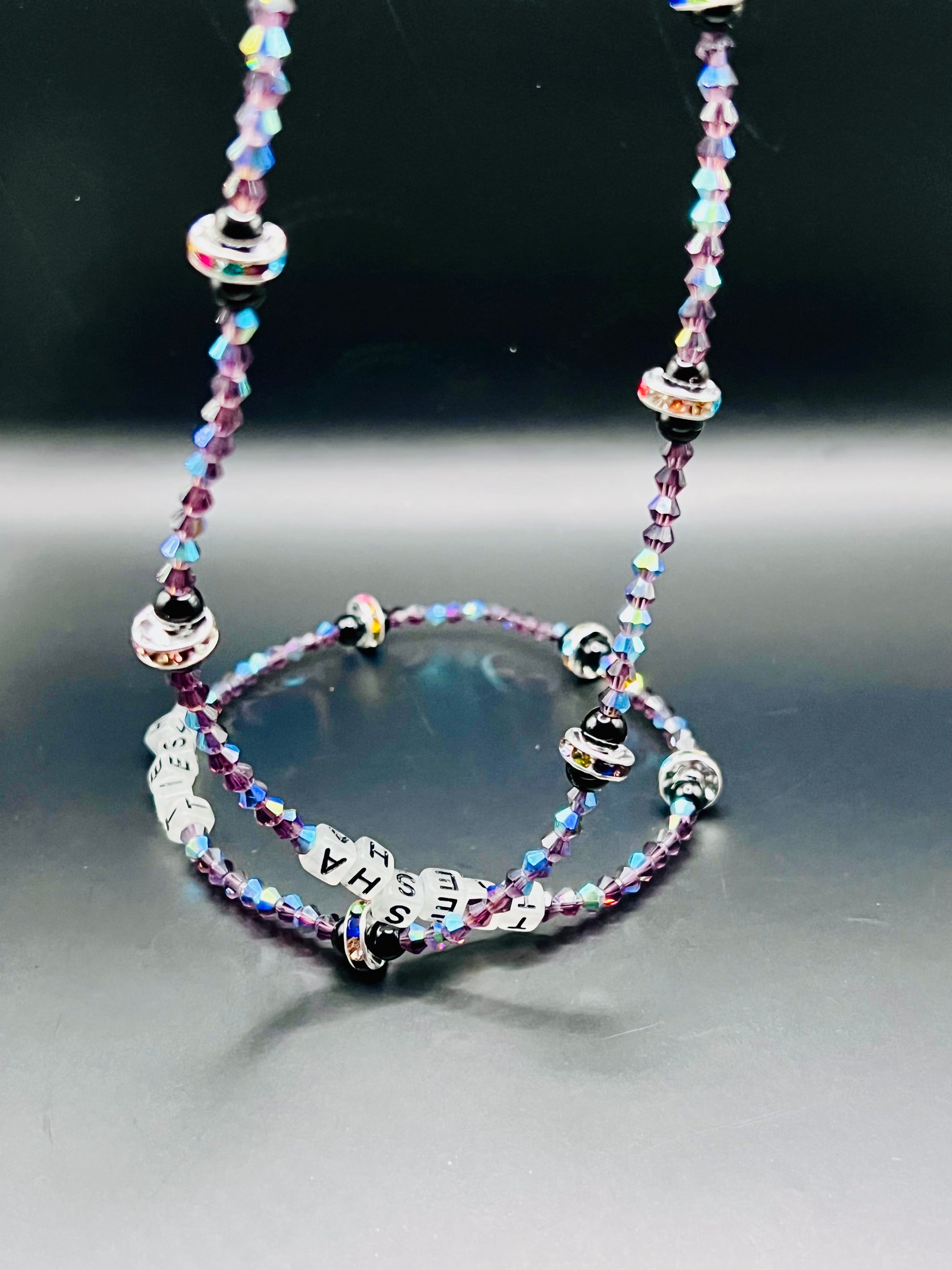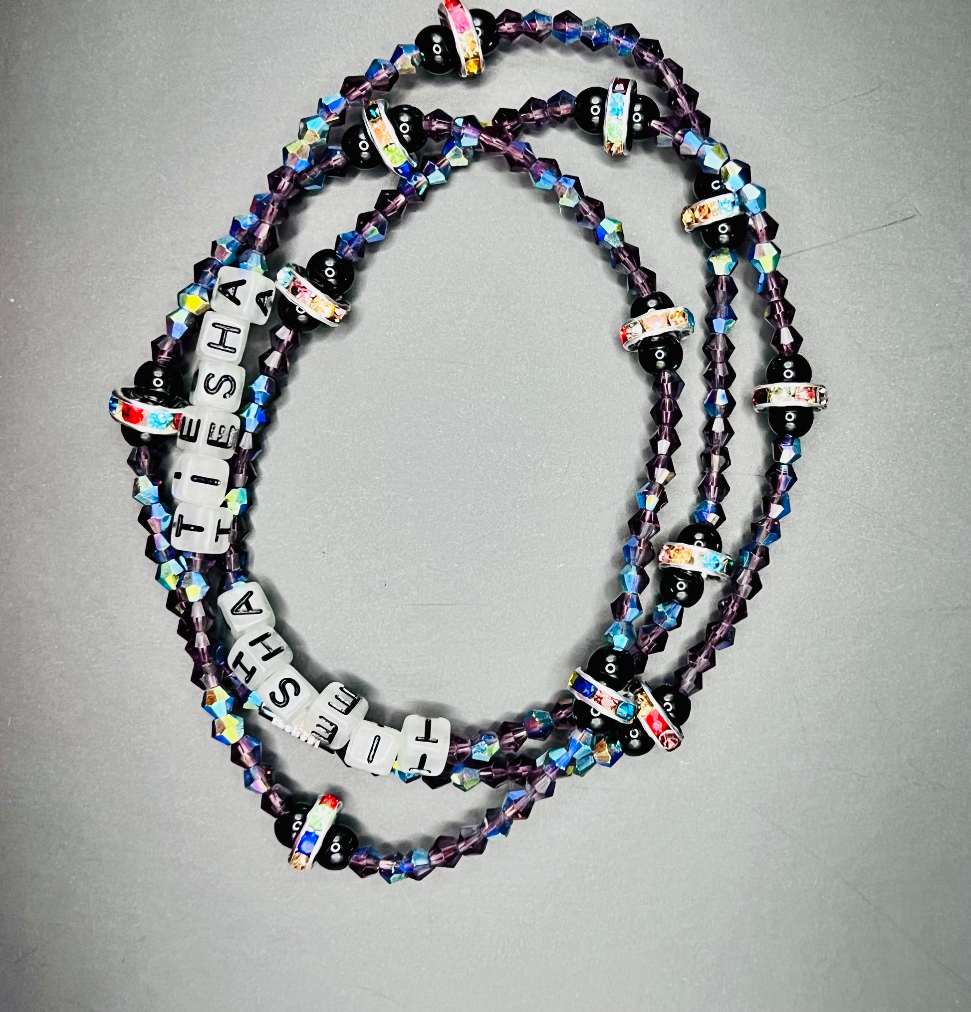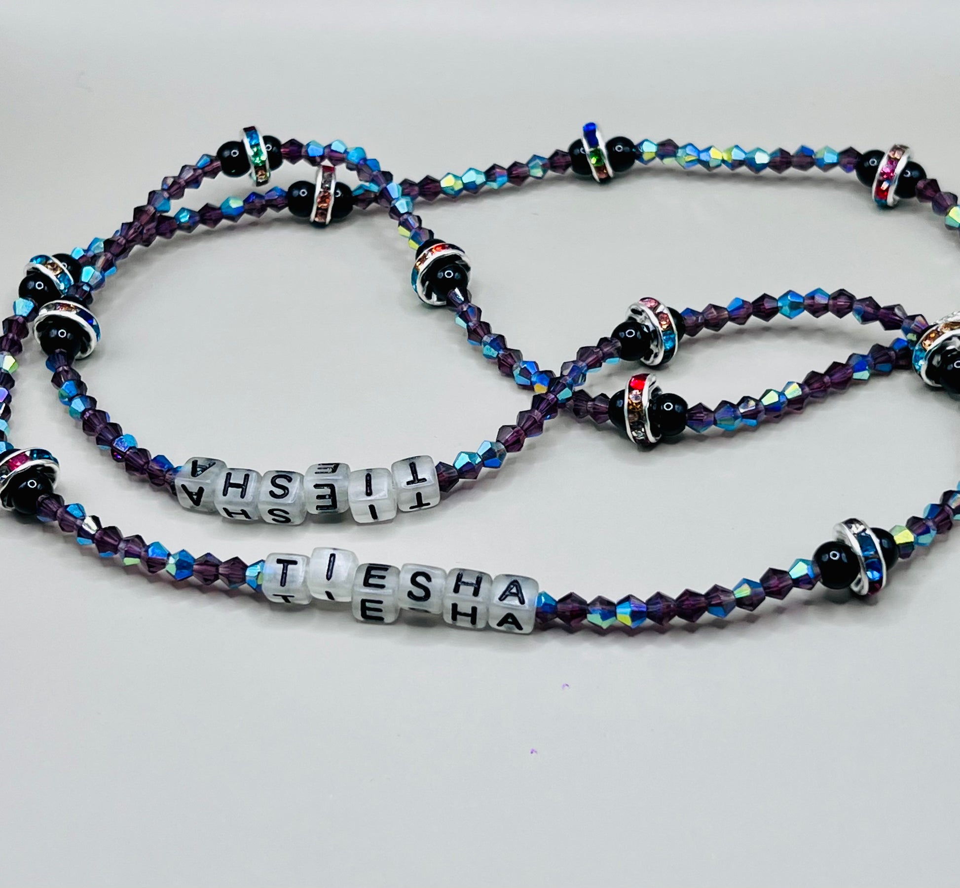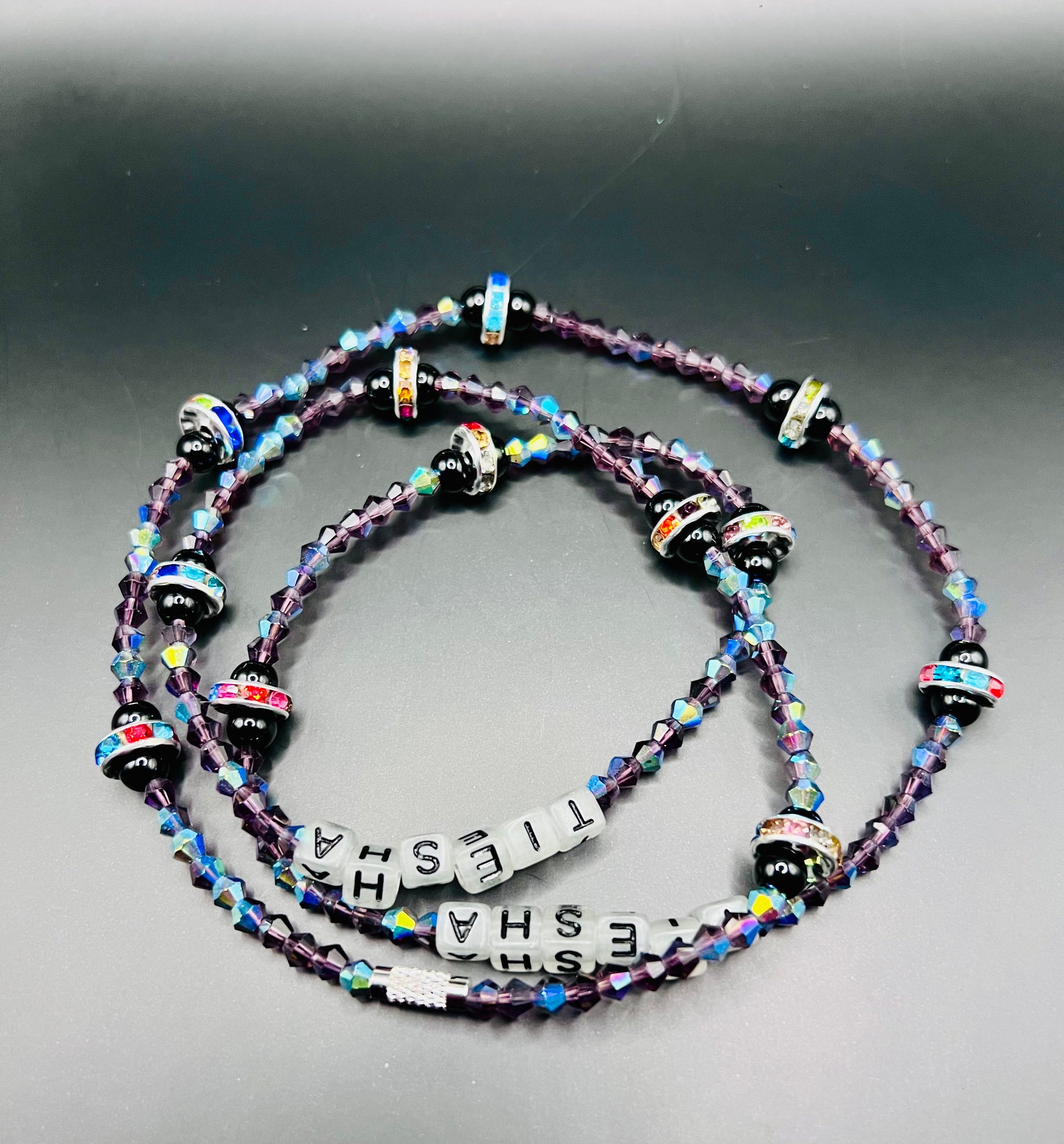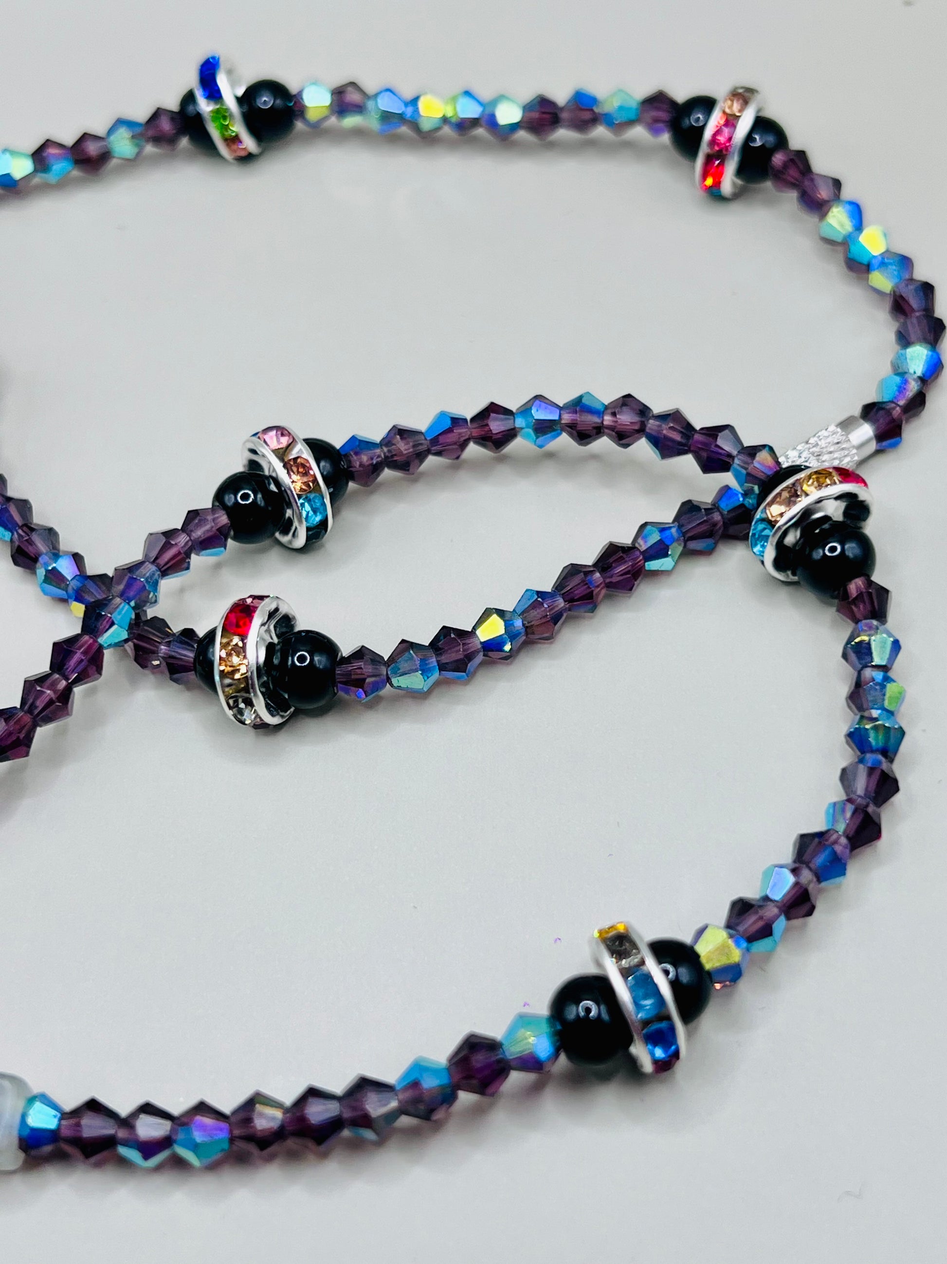 Colors used: Black iridescent , Glow In the Dark, Multi Colored Rhinestone Spacers.